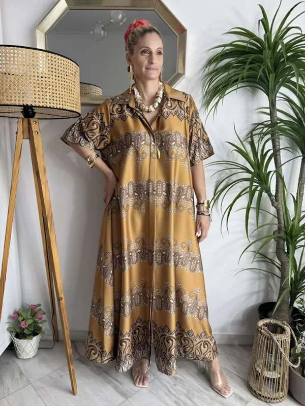 Αυτή το ιταλικο σεμιζιέ καφτάνι είναι η απόλυτη πρόταση για κομψότητα με modern χαρακτήρα! Φτιαγμένo από υψηλής ποιότητας σατέν ύφασμα, προσφέρει μοναδική αίσθηση και στιλ που ξεχωρίζει.