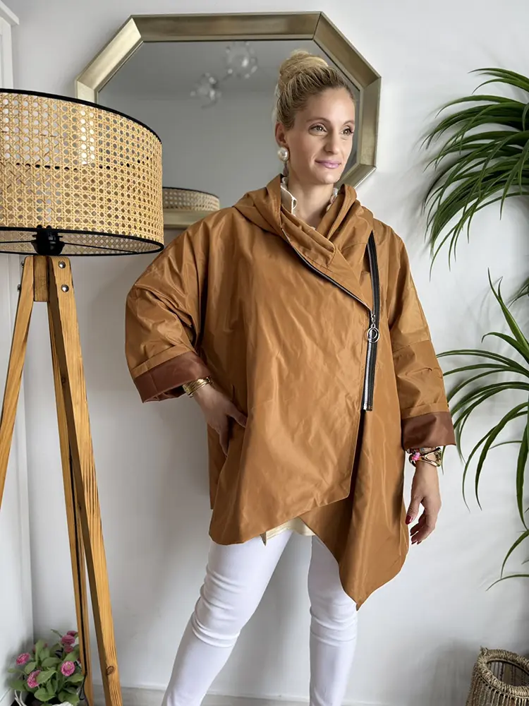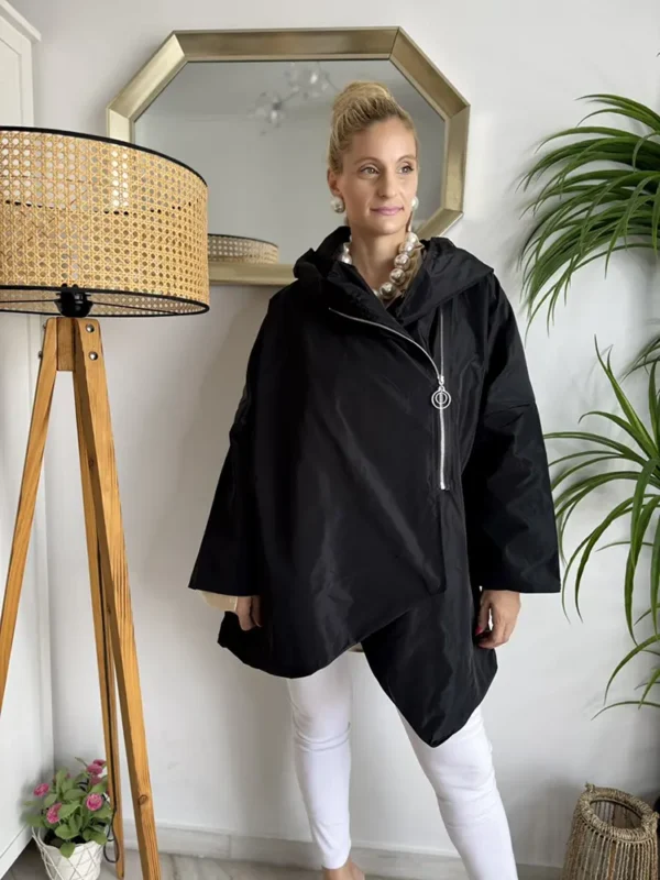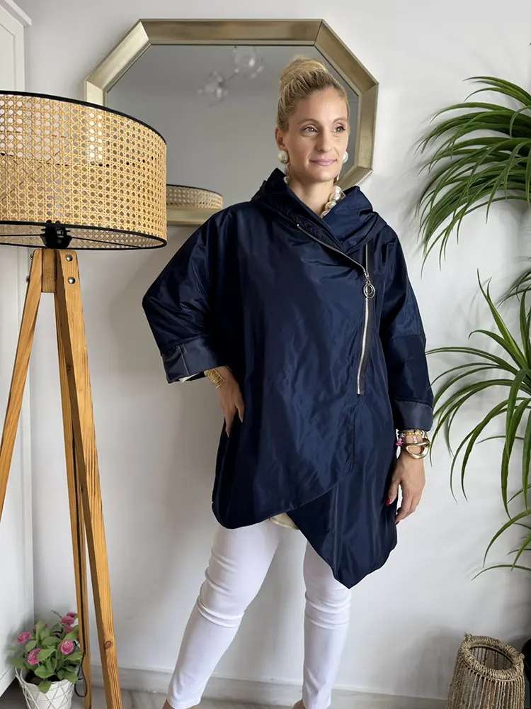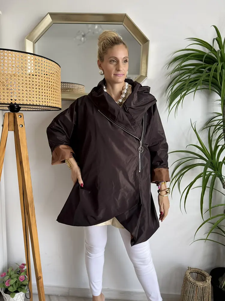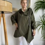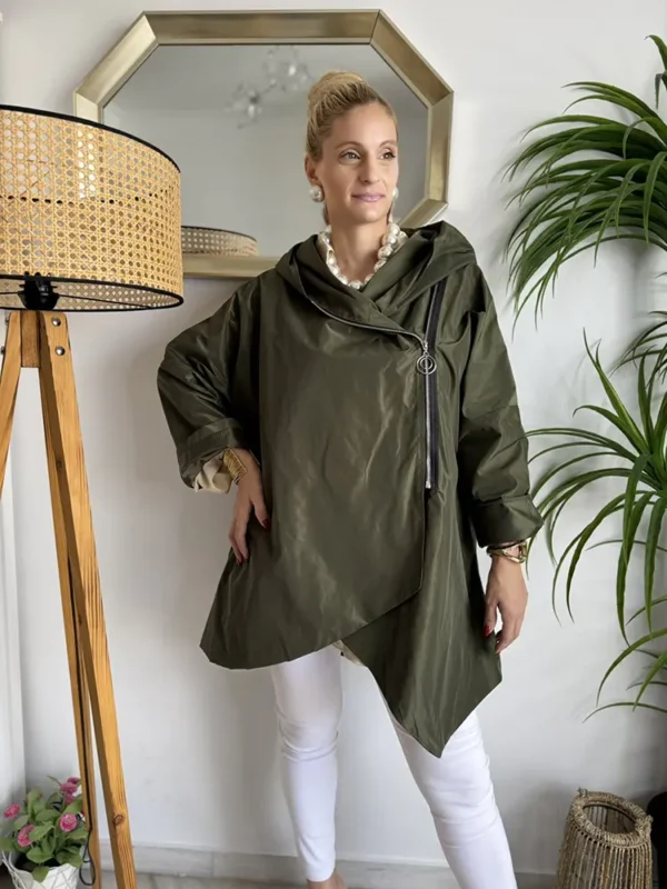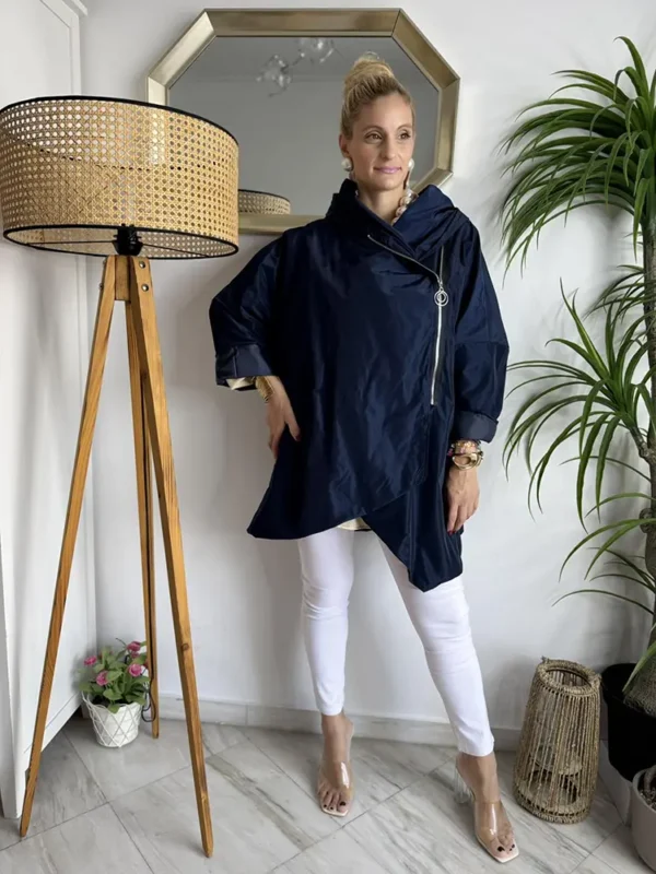 ✨🧥 Ιδιαίτερο Ασύμμετρο Πανωφόρι-jacket 🇮🇹 ✔️ Χαλαρή γραμμή που αγκαλιάζει το σώμα με στυλ 👉Διαθέτει φερμουάρ & κουκούλα 👗 Εντυπωσιακός γιακάς που φοριέται ανοιχτός ή κλειστός για διαφορετικές σιλουέτες ⚖️ Ασύμμετρο, μοντέρνο & one size (κάλυψη έως 140cm στήθος – 160cm περιφέρεια) 🌿 Ύφασμα Ποιότητα ΑΑΑ + με φυσική υφή & ελαφριά δομή για αβίαστη κομψότητα και avant-garde χαρακτήρα 🎨 Χρώματα: κεραμιδί 🧡, μπλε σκούρο 💙, χακί 💚, καφέ 🤎, μαύρο 🖤