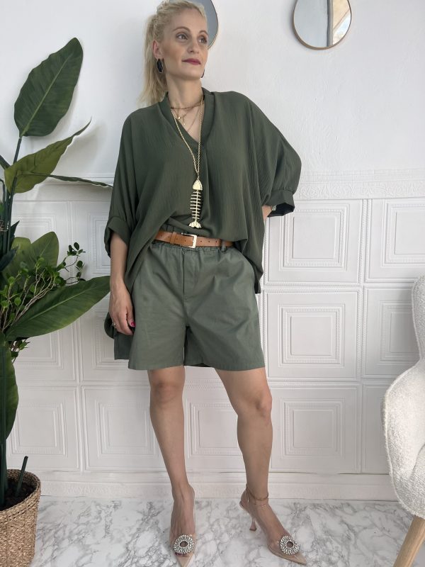 Βερμούδα με λάστιχο στη μέση και ζώνη