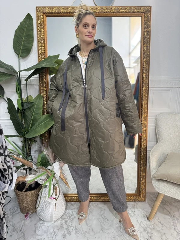 Oversized καπιτονέ μπουφάν με κουκούλα
