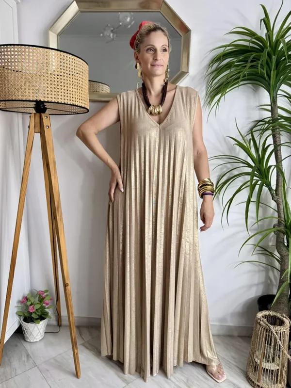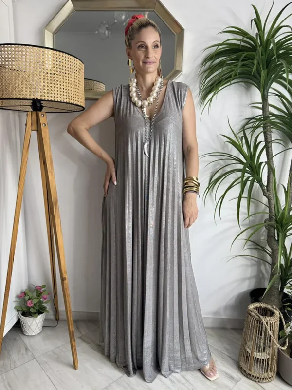 👗 Ιταλικό αμανικο lurex φόρεμα με εντυπωσιακή μεταλλική υφή