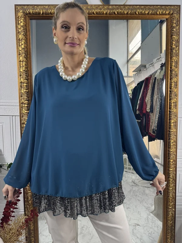 Chic ιδιαίτερη μπλούζα με τελείωμα παγιέτας