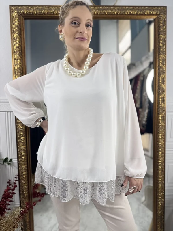 Chic ιδιαίτερη μπλούζα με τελείωμα παγιέτας