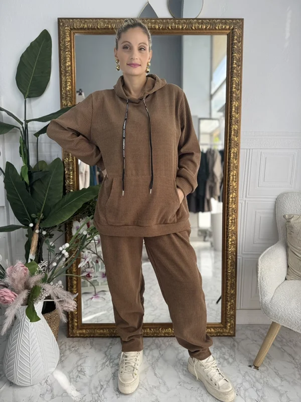 Κοτλέ oversized φούτερ φόρμα με μαλακή και ζεστή ύφανση