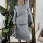 Ζεστό,πλεκτό σετ,μπλούζα-φόρεμα