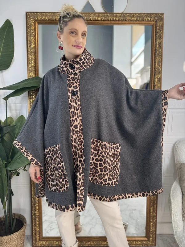 Oversized κάπα με λεοπάρ λεπτομέρειες
