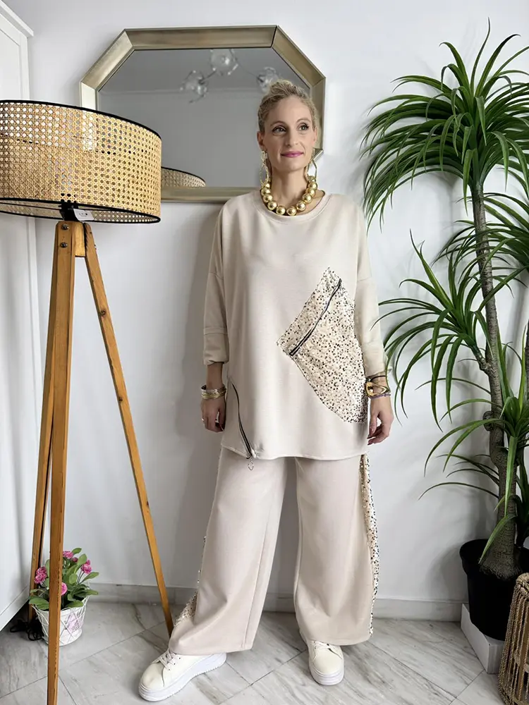🥂🇮🇹Premium ιταλικό σετ πολυτελείας – μπλούζα & παντελόνα 💕