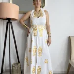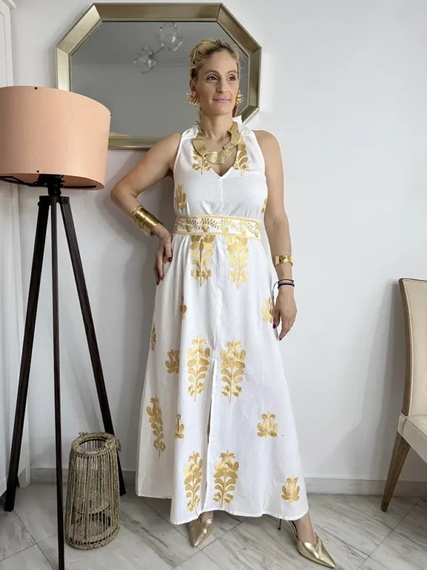 Υπέροχο φόρεμα κεντημένο με χρυσοκλωστή