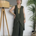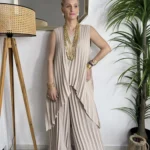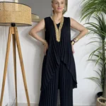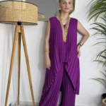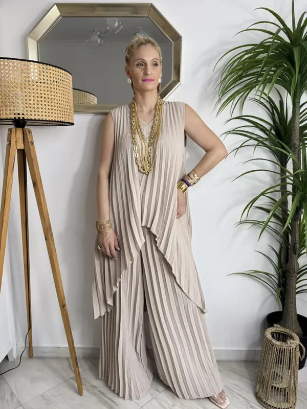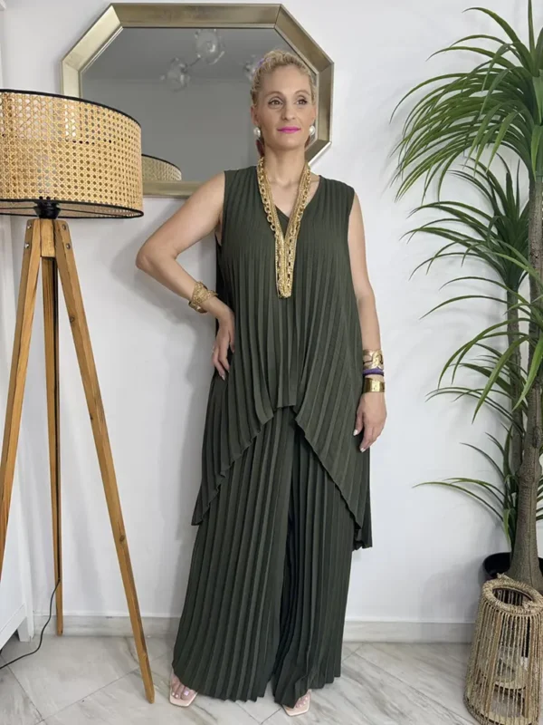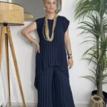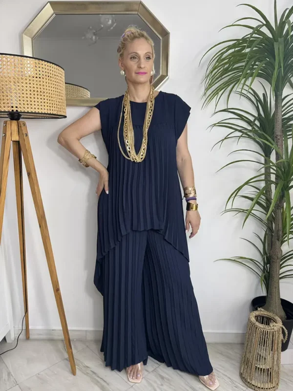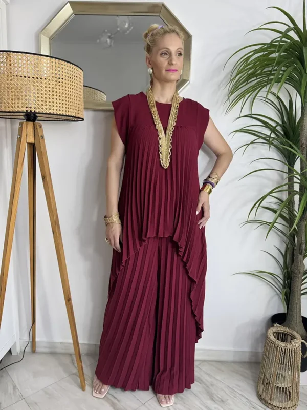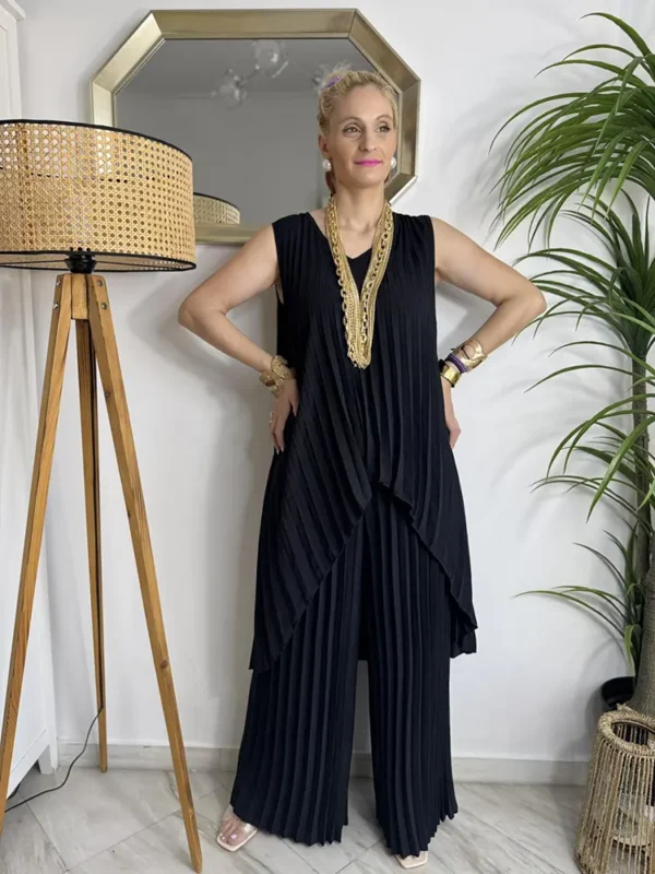 • Σετ δύο τεμαχίων: μακρύ ασύμμετρο τοπ & φαρδύ παντελόνι