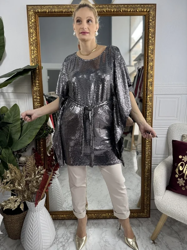 Λαμπερή μπλούζα παγιέτας με ζώνη