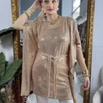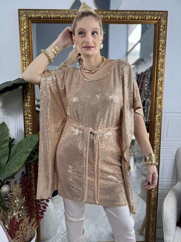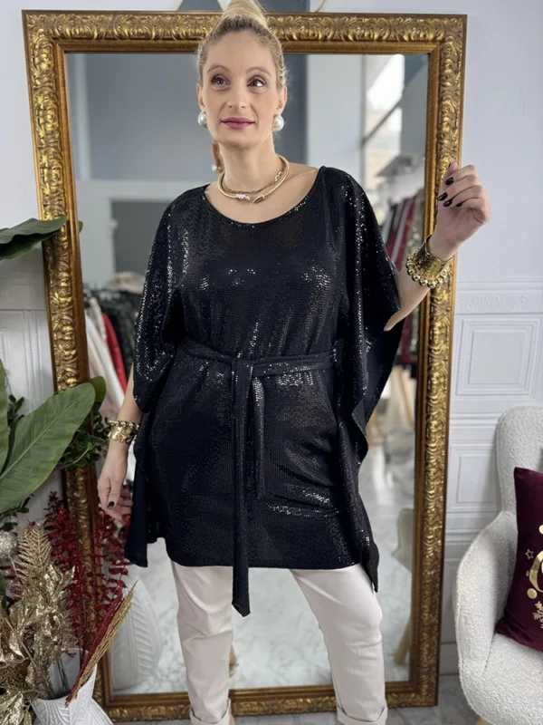 Λαμπερή μπλούζα παγιέτας με ζώνη