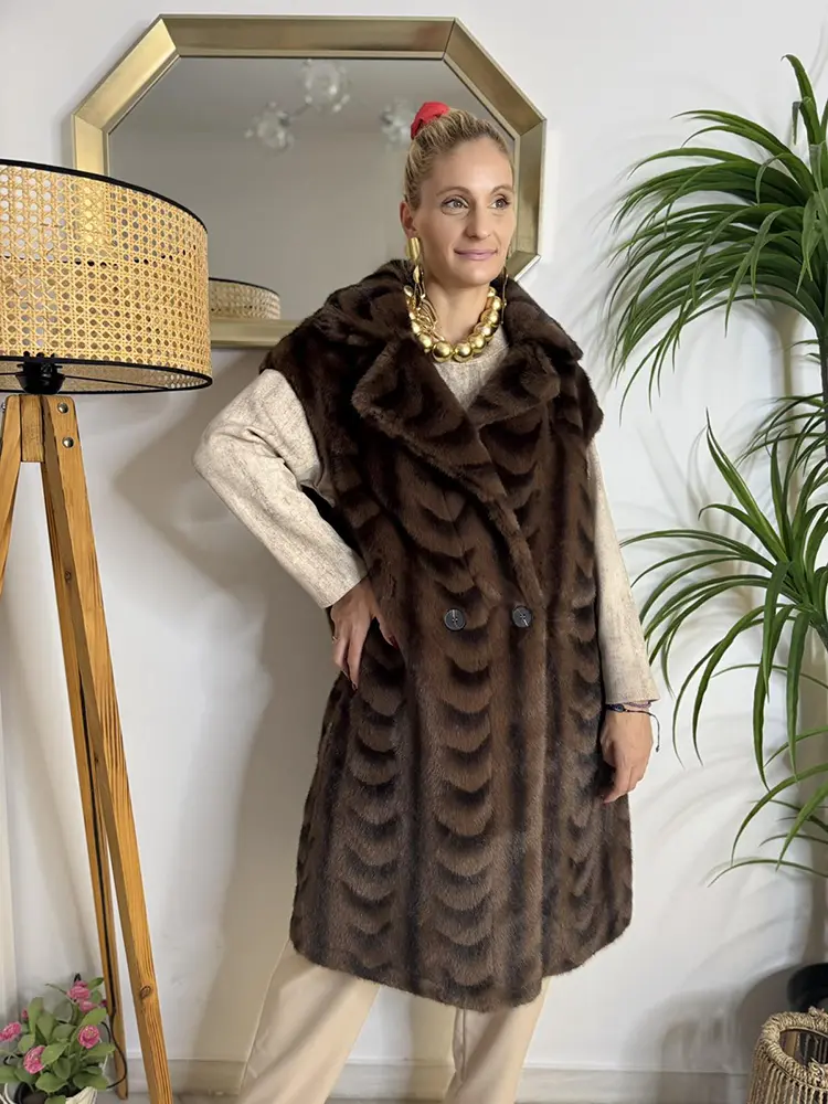 🧥 Ιταλική Εντυπωσιακή Αμάνικη Γούνα Πανωφόρι 🇮🇹