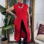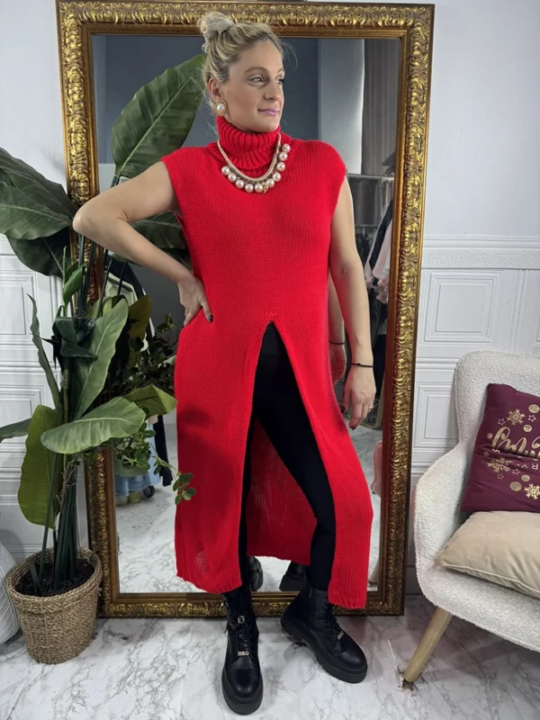 Πλεκτό φόρεμα με κόψιμο μπροστά