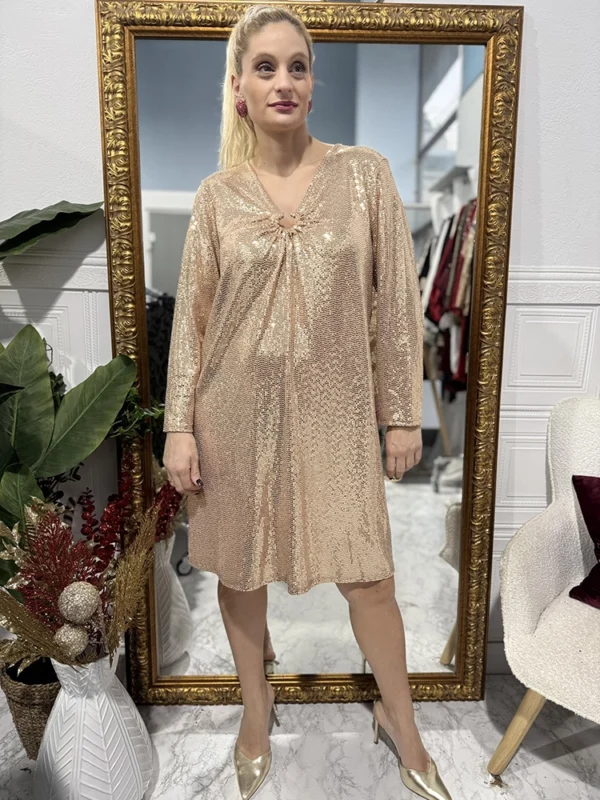 Ιδιαίτερο φόρεμα με παγιέτα και υπέροχο ντεκολτέ