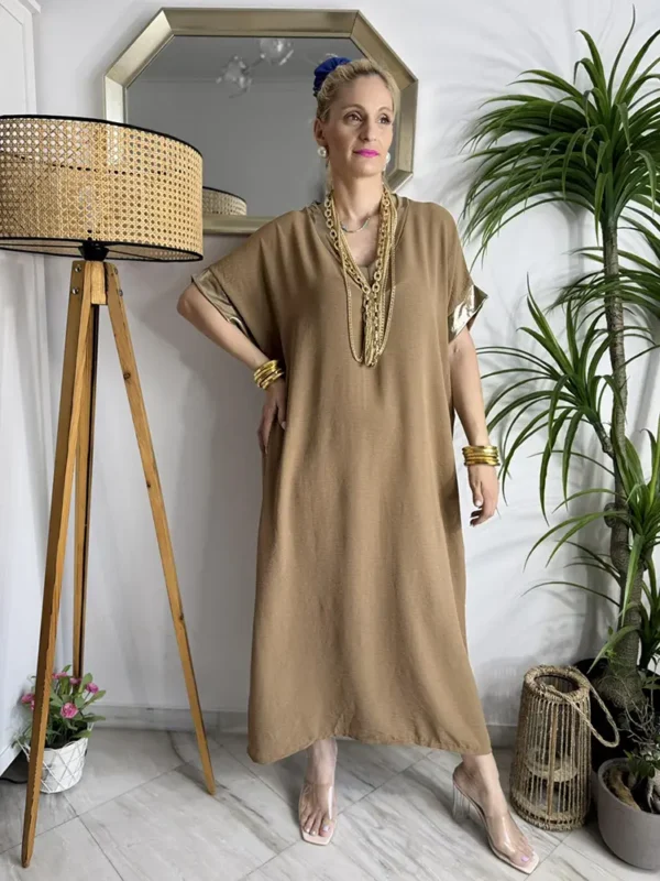 Oversized φόρεμα με χρυσοτυπία που αγκαλιάζει και κολακεύει μοναδικά.