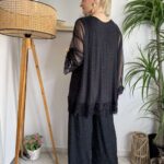Κεντημένη δαντέλα στα μανίκια και στο τελείωμα στην μπλούζα