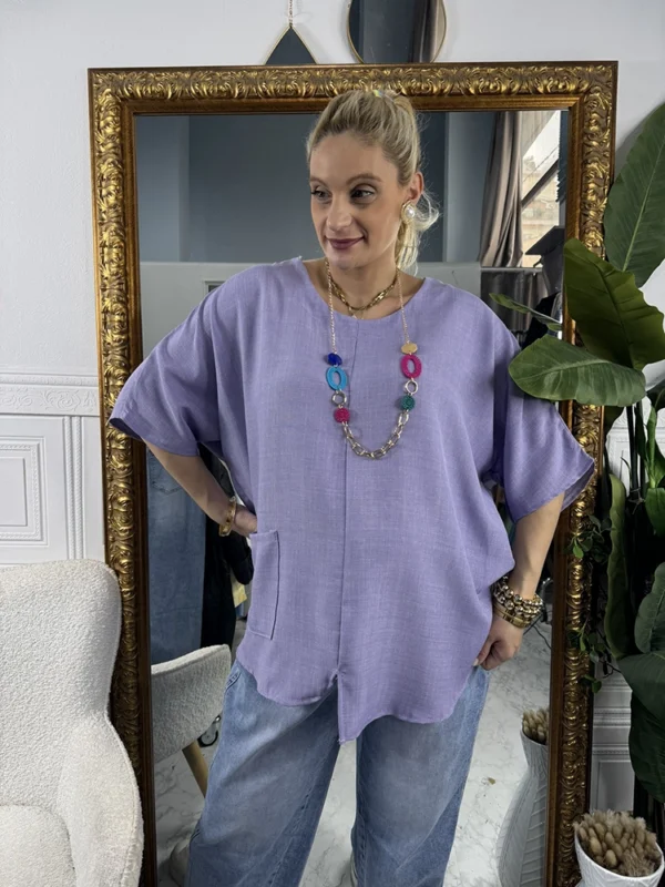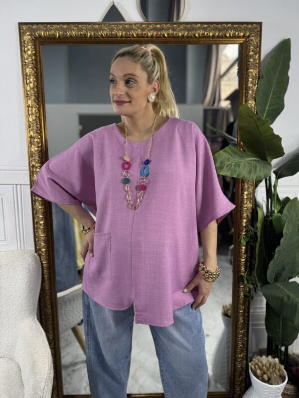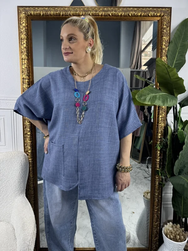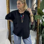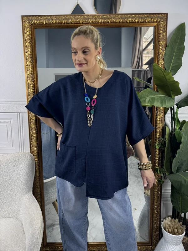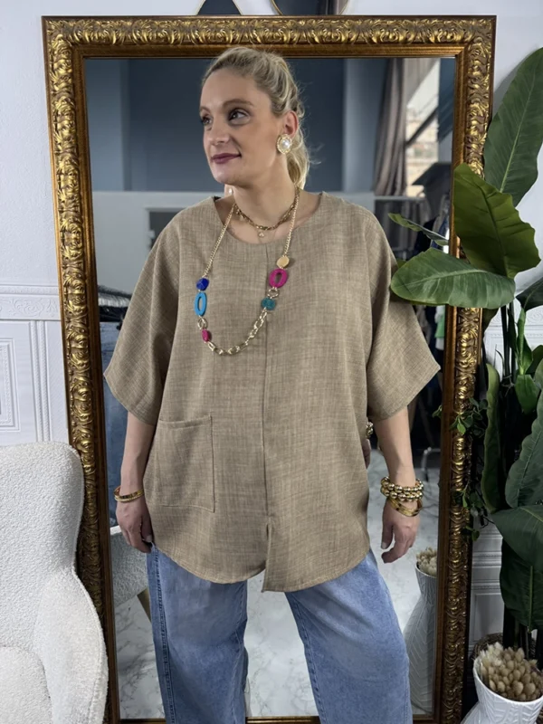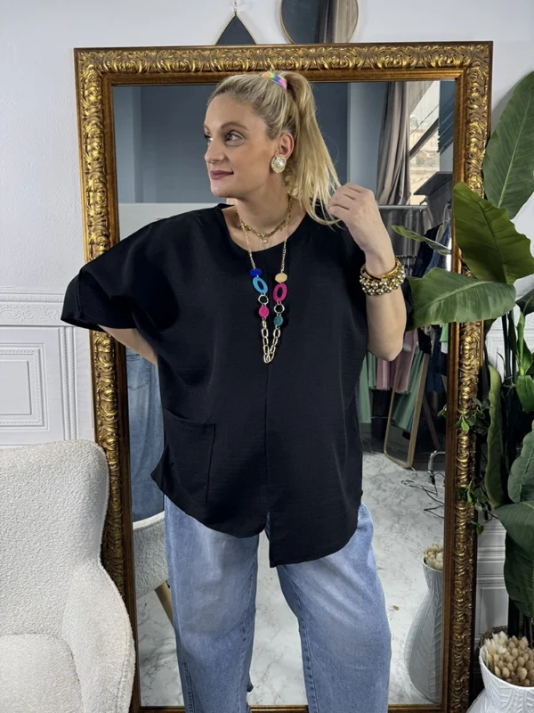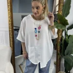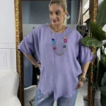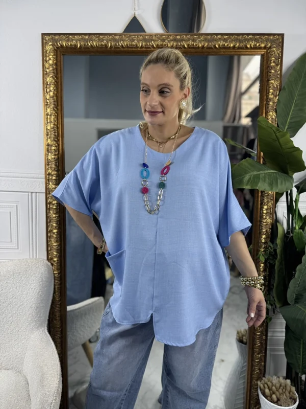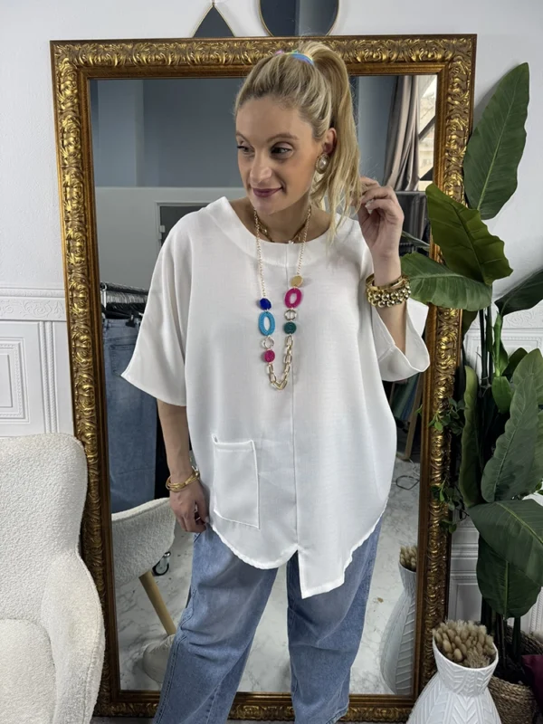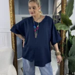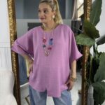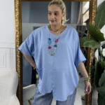 Άνετο ασύμμετρο oversized βισκόζης μπλουζάκι με δώρο το κολιέ
