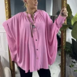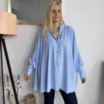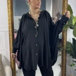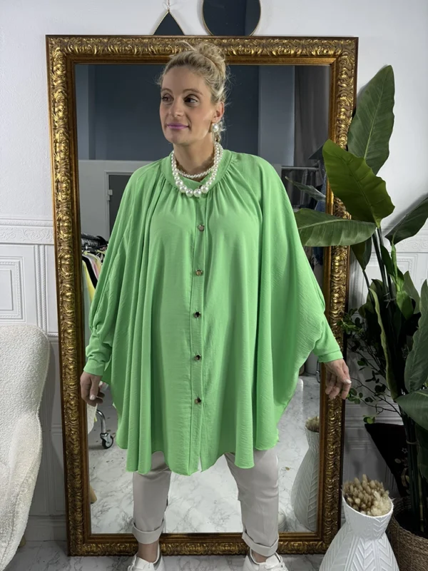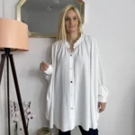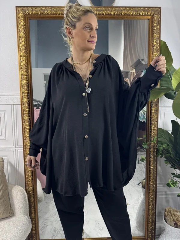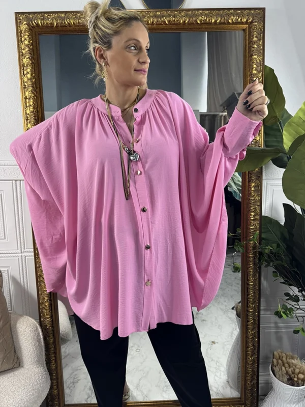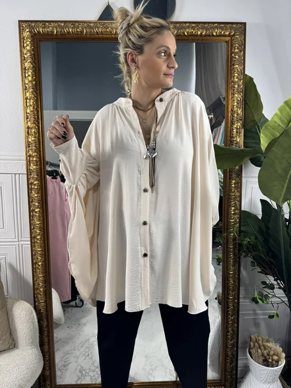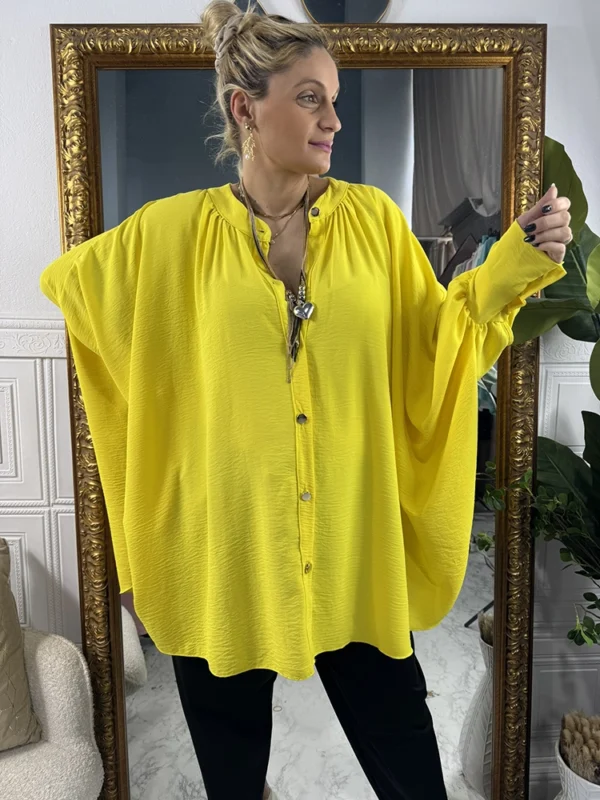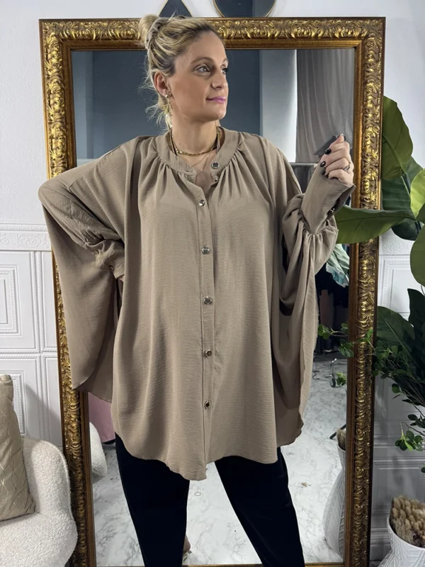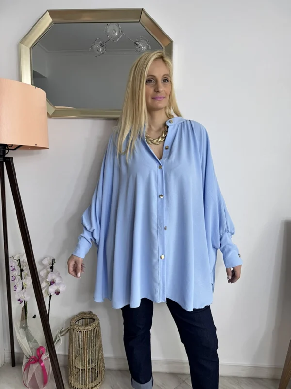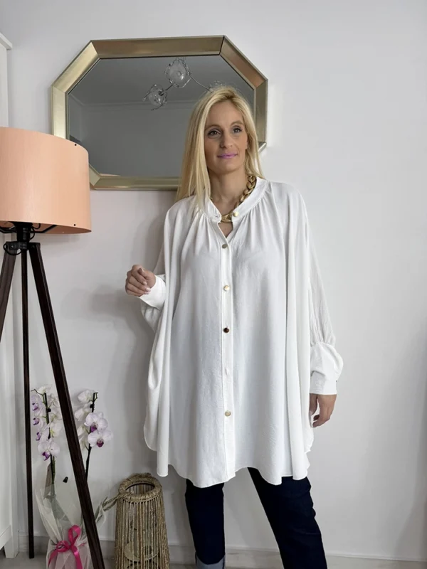 Oversized πουκαμίσα με ιδιαίτερα μανίκια και μανσέτα με χρυσά κουμπιά