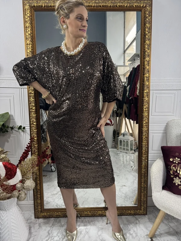 Αριστοκρατικό, λαμπερό φόρεμα midi με παγιέτα