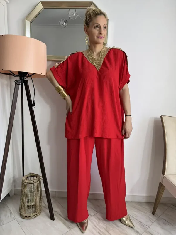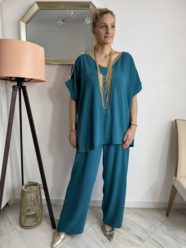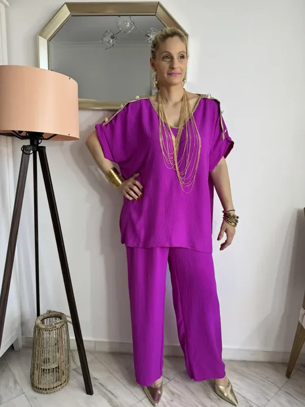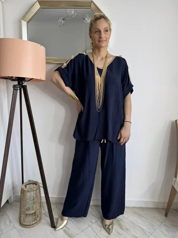 Σετ με χρυσά κουμπάκια και πολύ άνετη γραμμή