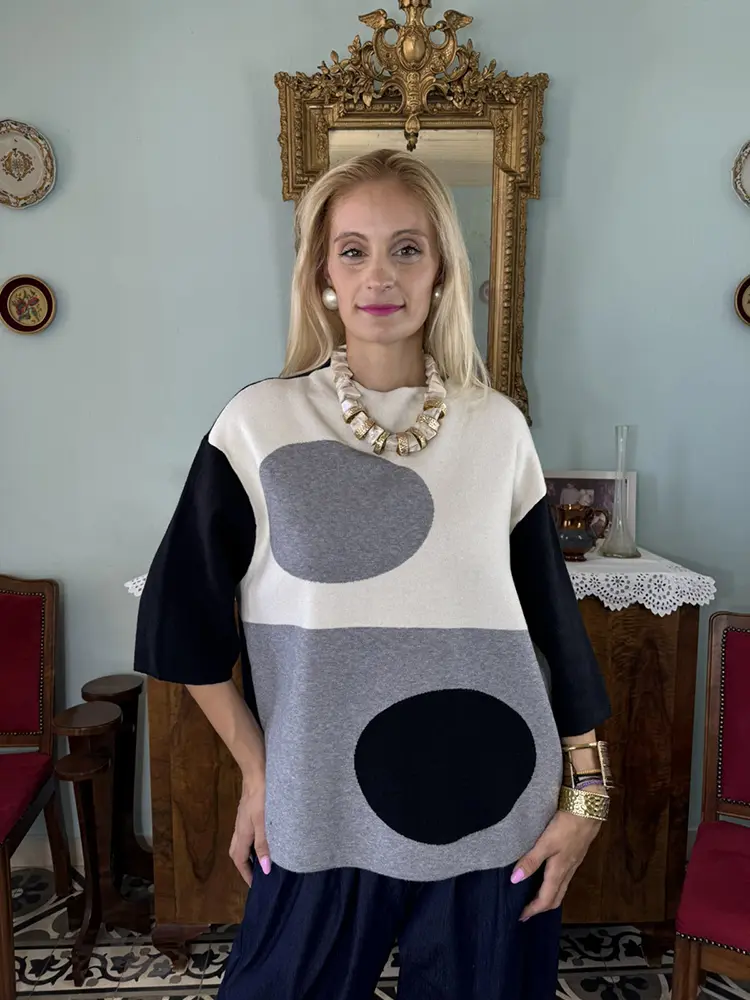 🩶 Γκρι & Μαύρο ⚫ με μοναδικό μοτίβο κύκλων 🔵⚪ που δίνει minimal αλλά statement χαρακτήρα ✨