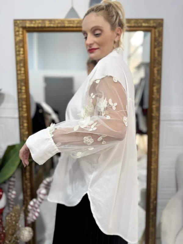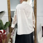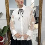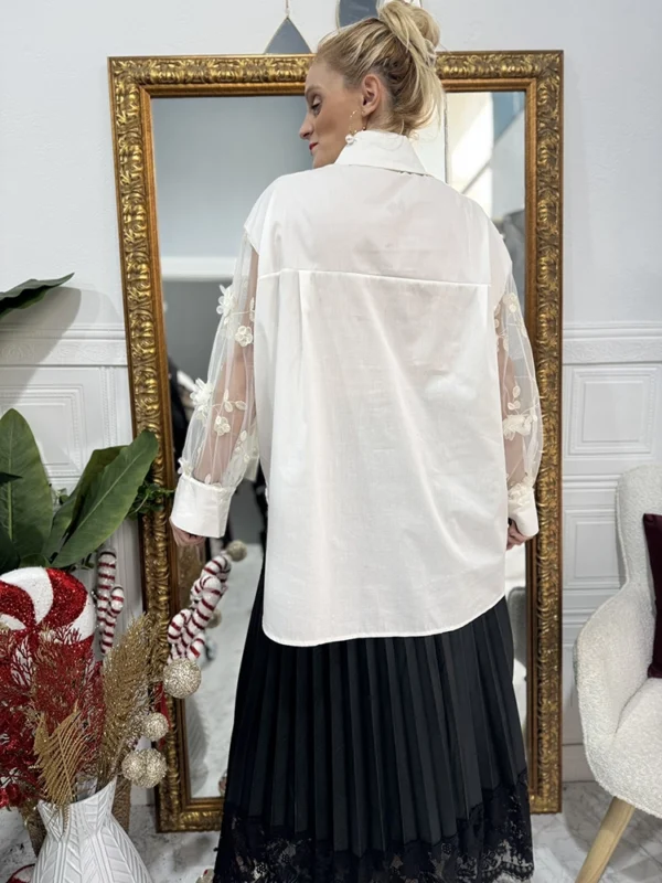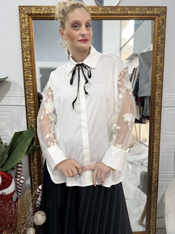 Βαμβακερό πουκάμισο με κρυφά κουμπάκια και κορδέλα μαύρη