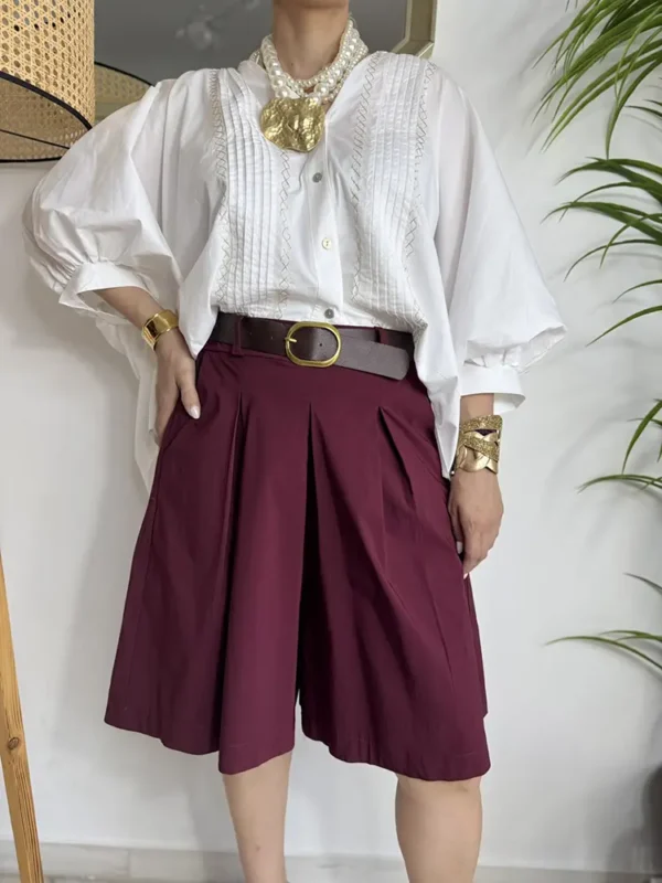🟣 Tina Bermuda – Oversized Style • Ύφασμα βισκόζη… • Δροσερή & άνετη για καθημερινή χρήση… • Πλούσιες πιέτες που προσθέτουν κομψότητα… • Ελαστική μέση στο πίσω μέρος για άψογη εφαρμογή… • Συνοδεύεται από δώρο ζώνη… • Καλύπτει έως 115 εκ. μέση & 140 εκ. περιφέρεια… • Ιδανική για chic & στιλάτες εμφανίσεις… 💜 Η βερμούδα που συνδυάζει στυλ και άνεση σε κάθε σας βήμα!