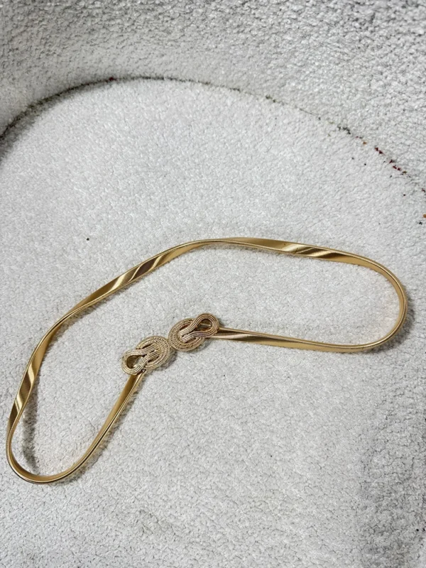 • Χρυσή ελαστική ατσάλινη ζώνη με χρυσή εγγράφα.