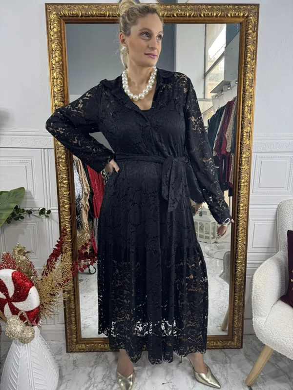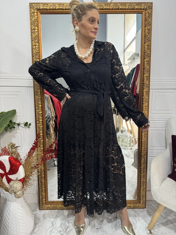 Maxi φόρεμα με δαντέλα ελαστική & λάστιχο στη μέση