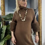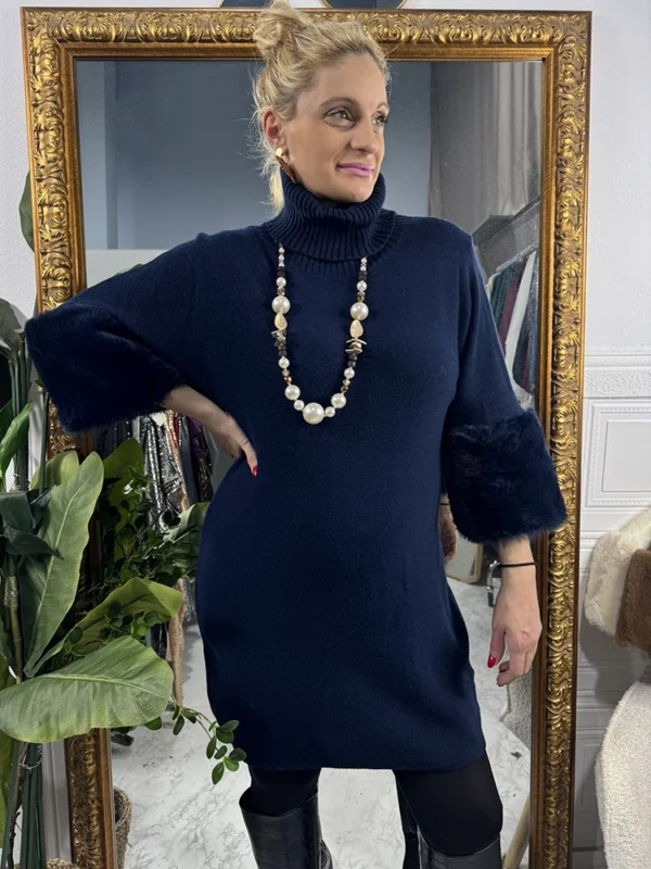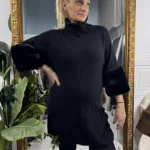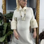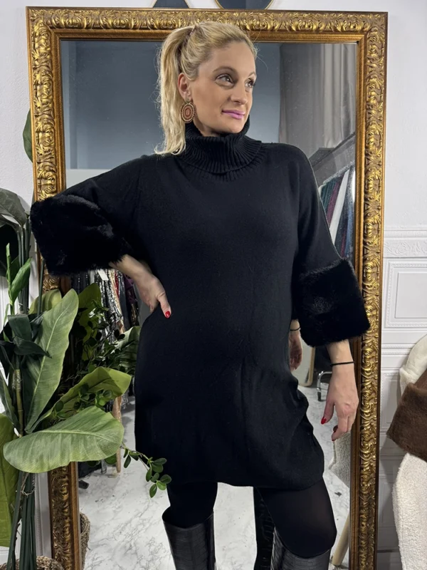 Πενταμάλακο φόρεμα ζιβάγκο με οικολογική γούνα στα μανίκια