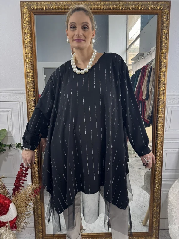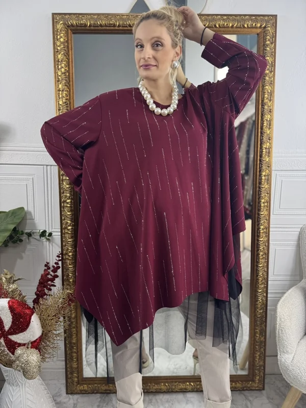 Μπλούζα oversized με στρας και τελείωμα απο τούλι